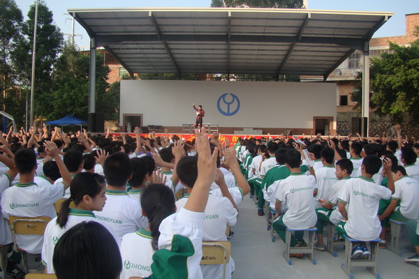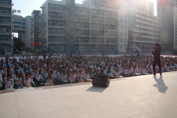 10月26日下午,李陽(yáng)瘋狂英語(yǔ)竇勇老師來(lái)到中遠(yuǎn)學(xué)校舉辦大型演講會(huì),為學(xué)生們帶來(lái)不一樣的學(xué)習(xí)英語(yǔ)的方法,學(xué)校的英語(yǔ)老師及全體學(xué)生參加了演講會(huì)。 活動(dòng)現(xiàn)場(chǎng),竇勇老師用幽默并富于感染力的語(yǔ)言吸引著每一位同學(xué),積極與老師同學(xué)們互動(dòng),現(xiàn)場(chǎng)不斷傳來(lái)整齊的朗讀“I can’t stand my poor English!”的聲音。除互動(dòng)外,竇勇老師還叮囑學(xué)生們注意記筆記,一條條傳授學(xué)習(xí)英語(yǔ)的技巧。最令人印象深刻的是,竇勇老師寓教于樂(lè),帶動(dòng)學(xué)生們用肢體語(yǔ)言來(lái)學(xué)習(xí)英語(yǔ)語(yǔ)法知識(shí)。 此次演講會(huì)現(xiàn)場(chǎng)的氣氛異常熱烈,帶動(dòng)了同學(xué)們學(xué)習(xí)英語(yǔ)的熱情,培養(yǎng)了同學(xué)們學(xué)習(xí)英語(yǔ)的興趣,對(duì)同學(xué)們提升英語(yǔ)口語(yǔ)、英語(yǔ)學(xué)習(xí)水平有很大幫助。