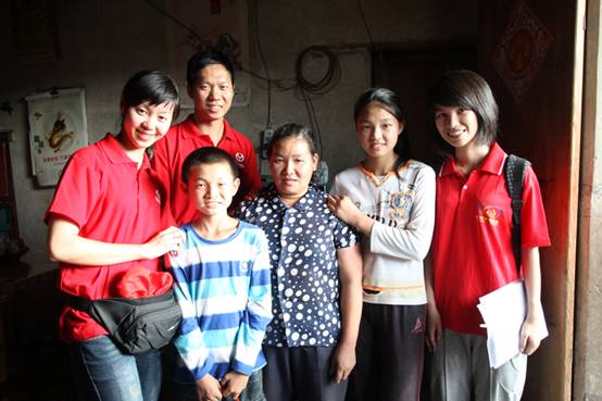志愿者們與貧困家庭合影